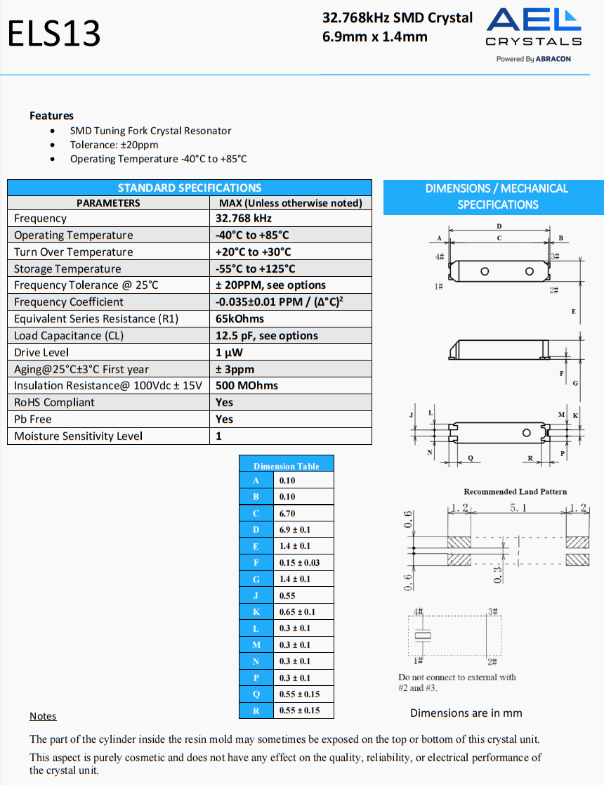 美國ELS13-32.768kHz-T晶振,ELS13音叉晶振,AEL物聯(lián)網(wǎng)終端晶振