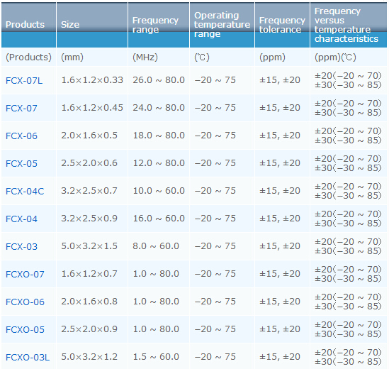 晶振參數(shù)表 | 石英晶體諧振器FCX-06 | |