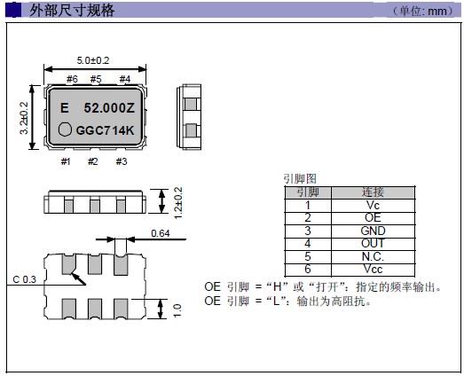 絕對頻率控制范圍 | APR | GCZ : ±50 × 10-6 Min. | VC=1.65 V±1.5 V |