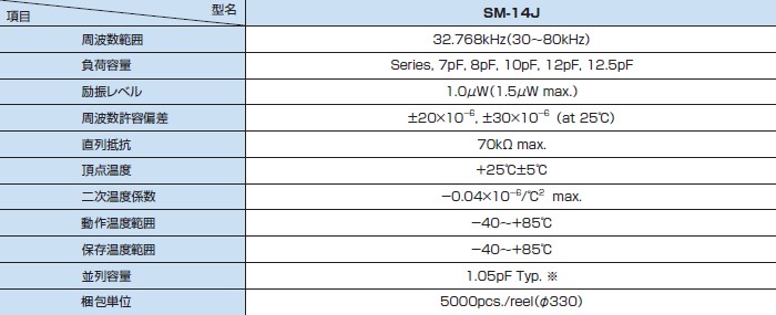 周波數許容偏差 | ±20×10-6,±30×10-6(at 25℃) | |