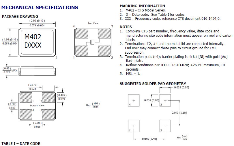 402F160XXCJR | CTS晶振 | 402 | MHz Crystal | 16MHz |