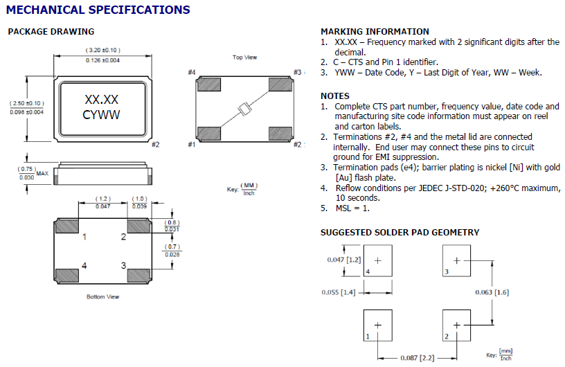 403I35E26M00000 | CTS晶振 | 403 | 26MHz | 4-SMD, No Lead |