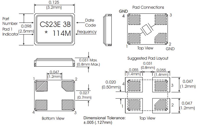 CS-023E-114.285M,康納溫菲爾德晶振,6G以太網(wǎng)晶振尺寸圖