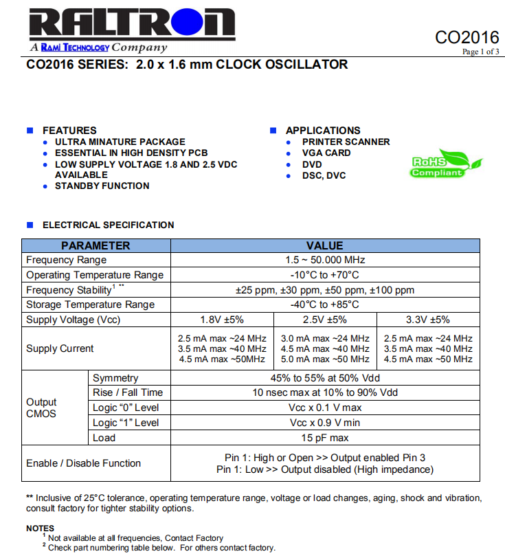 Raltron晶振,CO2016晶振,石英晶體振蕩器.有源晶振只是晶體本身起振需要外部電壓供應(yīng),起振后可直接驅(qū)動(dòng)CMOS集成電路,產(chǎn)品本身已實(shí)現(xiàn)與薄型IC(TSSOP封裝,TVSOP封裝)同樣的1mm厚度,斷開時(shí)的消費(fèi)電流是15µA以下,編帶包裝方式可對(duì)應(yīng)自動(dòng)搭載及IR回流焊接(無鉛對(duì)應(yīng))產(chǎn)品有幾種電壓供選1.8V,2.5V,3V3.3V,5V,以應(yīng)對(duì)不同IC產(chǎn)品需要.
