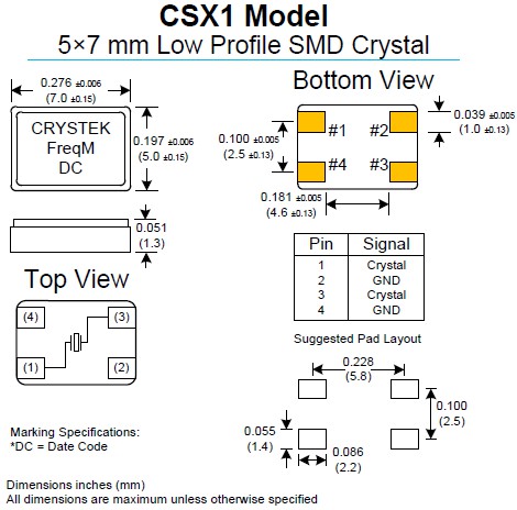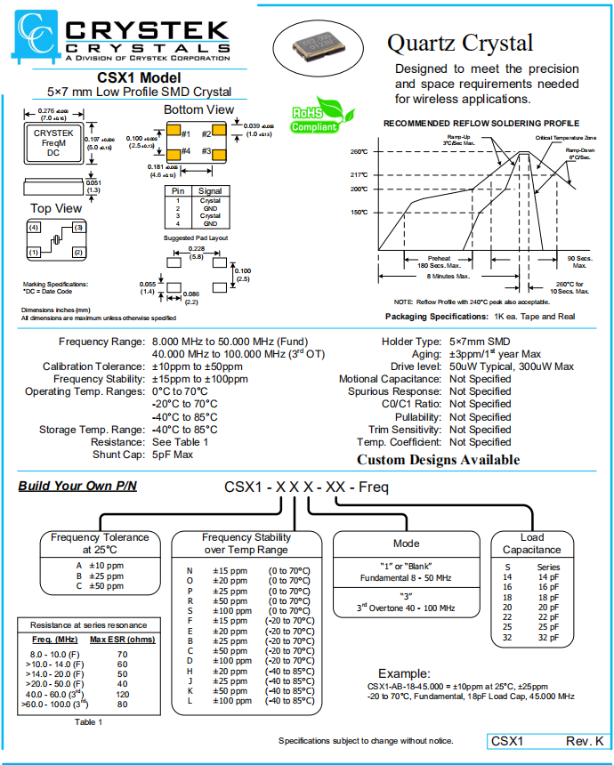 CRYSTEK晶振 | 單位 | CSX1晶振 | 石英晶振基本條件 |