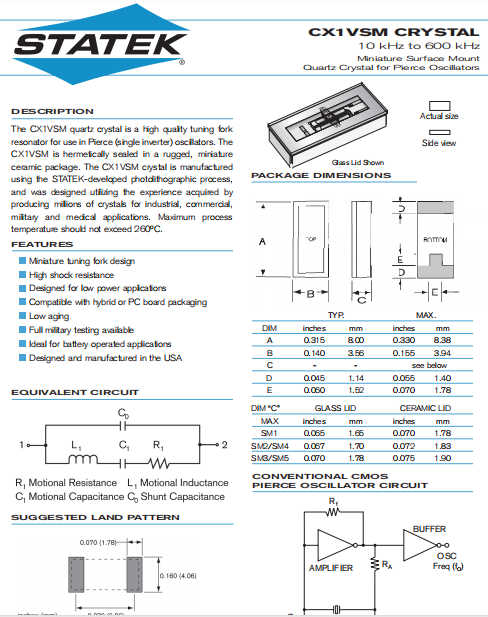 Statek晶振 | 單位 | CX1VSM晶振 | 石英晶振基本條件 |
