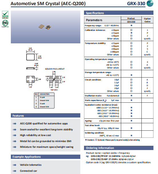 Golledge晶振 | 單位 | GRX-330晶振 | 石英晶振基本條件 |