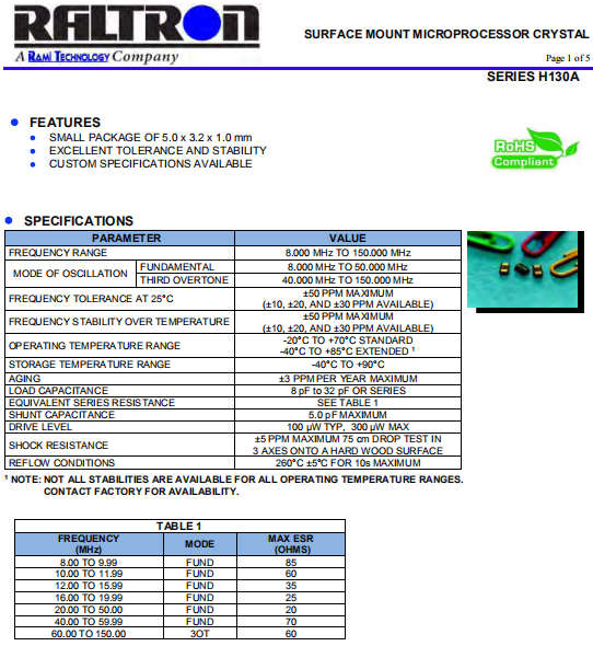 Raltron晶振 | 單位 | H130A晶振 | 石英晶振基本條件 |