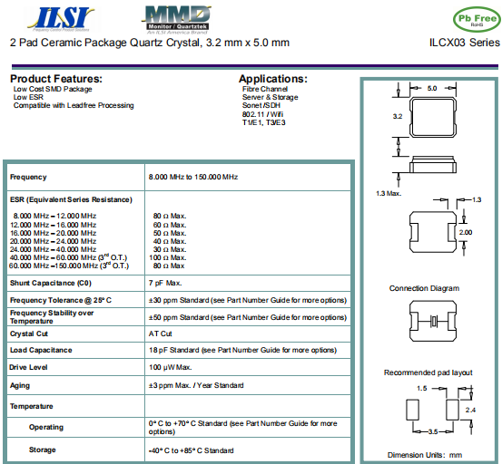 ILSI晶振 | 單位 | ILCX03晶振 | 石英晶振基本條件 |