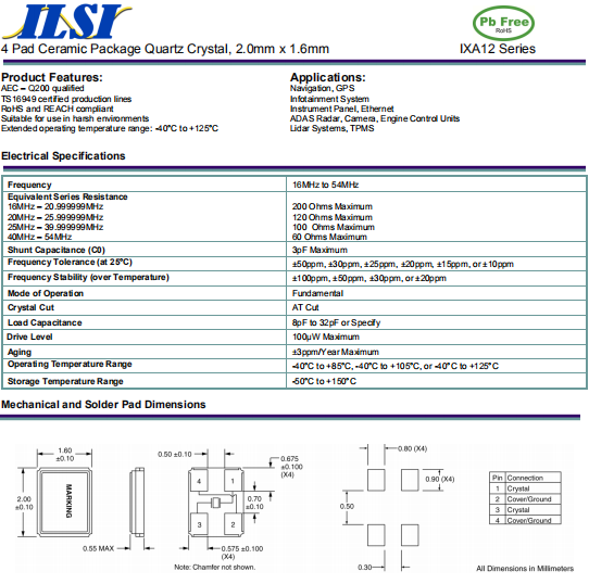 ILSI晶振 | 單位 | IXA12晶振 | 石英晶振基本條件 |
