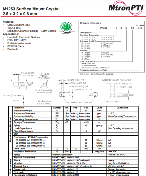 MTRONPTI晶振 | 單位 | M1253晶振 | 石英晶振基本條件 |
