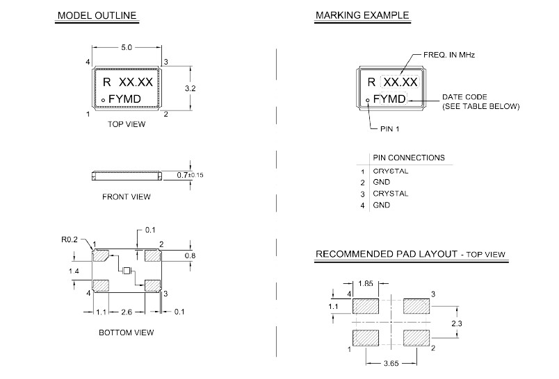 頻率溫度特征 | f_tem | ±50× 10-6 /-30°C~+85°C | 超出標準的規格請聯系我們. |