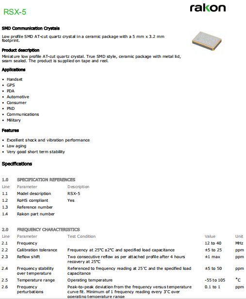 Rakon晶振 | 單位 | RSX-5晶振 | 石英晶振基本條件 |