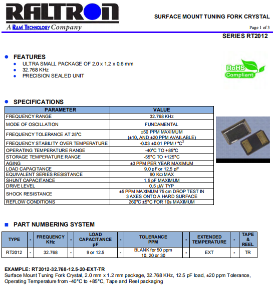 Raltron晶振 | 單位 | RT2012晶振 | 石英晶振基本條件 |