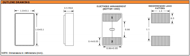 激勵功率 | DL | 1.0μW Max. | 推薦:100μW ~ 300μW |