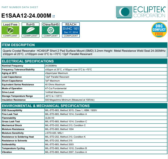 Ecliptek晶振將確保其振蕩器和石英晶體諧振器產(chǎn)品及相關(guān)設(shè)施滿足甚至超出國家的以及地方環(huán)保機構(gòu)的相關(guān)法規(guī)規(guī)定及其他要求,同時該公司盡可能的參與并協(xié)助政府機關(guān)和其他官方組織從事的環(huán)保活動. 在地方對各項設(shè)施的管理責(zé)任中,確保滿足方針的目標(biāo)指標(biāo),同時在各種經(jīng)營與生產(chǎn)活動中完全遵守并符合現(xiàn)行所有標(biāo)準(zhǔn)規(guī)范的要求.ECLIPTEK晶振,E1S石英晶體諧振器,E1SAA12-24.000M晶振.