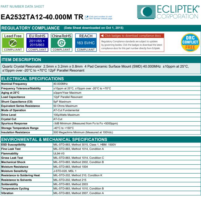 ECLIPTEK晶振將有效率的使用自然資源和能源,以便從源頭減少廢物產生和排放.我們將在關注于預防環境和安全事故,保護公眾健康的同時,努力改進我們的操作.我公司將積極參與加強公眾環境、健康和安全意識的活動,提高公眾對普遍的環境、健康和安全問題的注意. 日蝕美國晶振,EA2532TA12-40.000M-TR晶振,無鉛環保晶振.