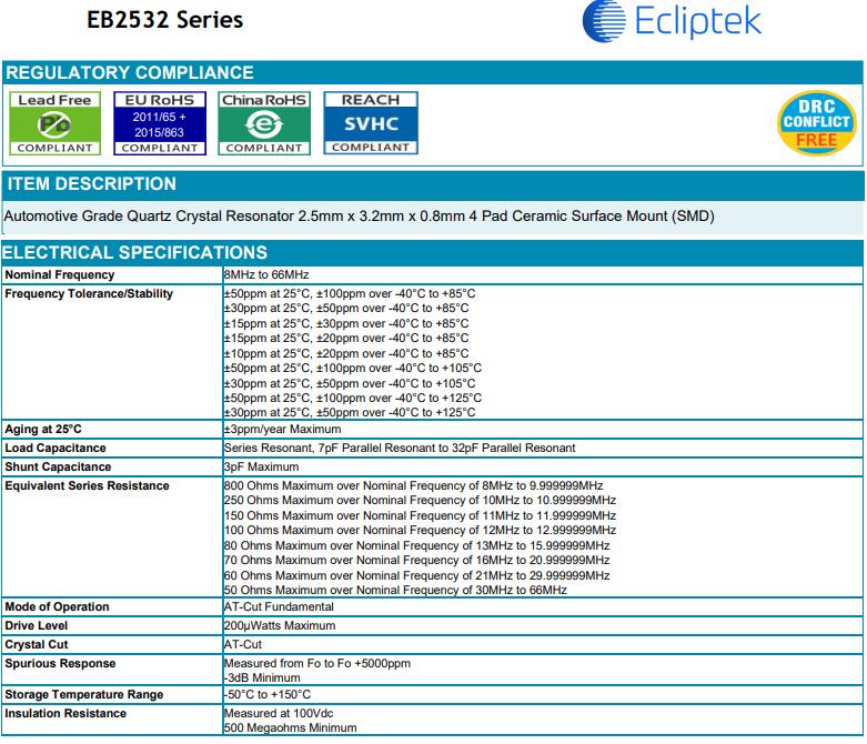 Ecliptek晶振 | 單位 | EB2532晶振 | 石英晶振基本條件 |