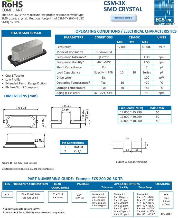 ECS-120-20-3X-EN-TR,SMD石英晶體,6G室內路由器晶振參數表