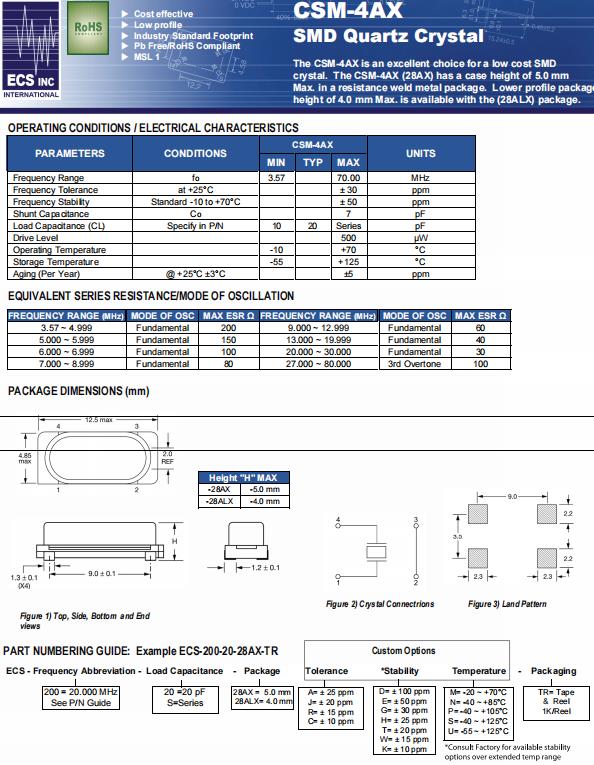 ECS-40-20-28AX-TR | ECS晶振 | CSM-4AX | 4MHz | -10°C ~ 70°C |