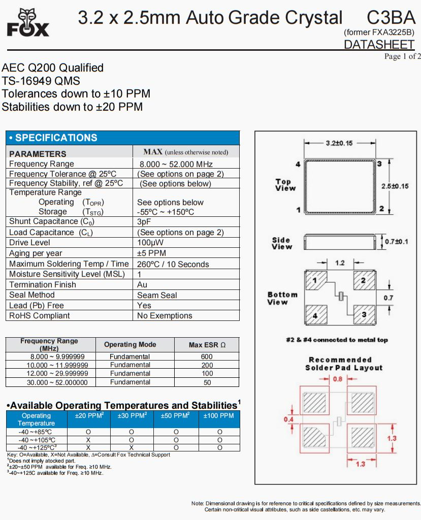 FOX汽車晶體,領先全球的電子手剎晶振,FC3BABCVI52.0晶振