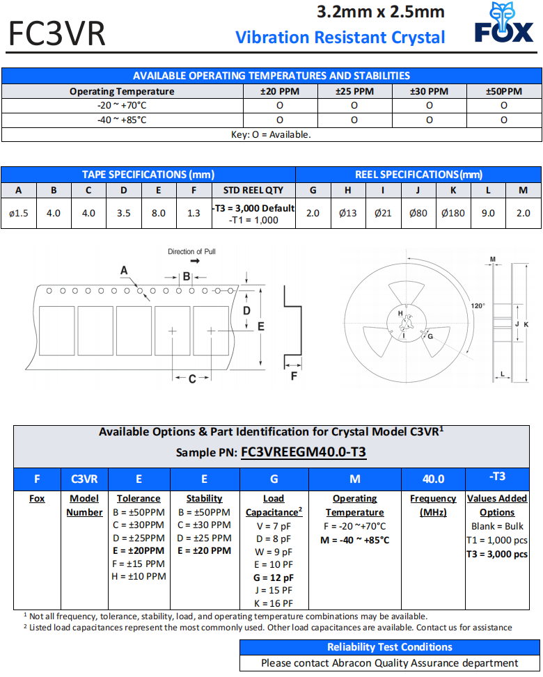 FC3VREEDM40.0-T1 | Fox晶振 | FC3VR | 40 MHz | ±20ppm |