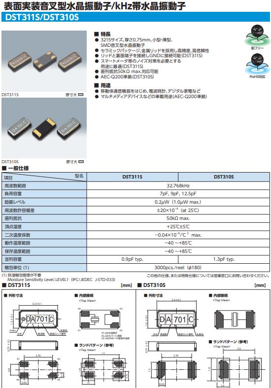 大真空晶振,DST310S音叉晶體,TJF080DP1AA003諧振器,32.768KHz時鐘晶體具有小型,薄型,輕型的貼片晶振表面音叉型晶體振蕩器,產品具有優良的耐熱性,耐環境特性,可發揮晶振優良的電氣特性,符合RoHS規定,滿足無鉛焊接的高溫回流溫度曲線要求,金屬外殼的封裝使得產品在封裝時能發揮比陶瓷振蕩器外殼更好的耐沖擊性.