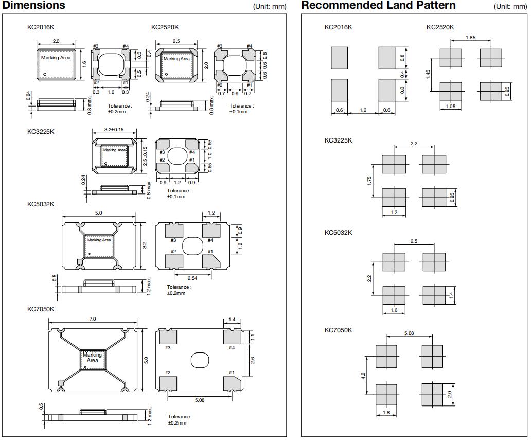 KC2520K25.0000C1GE00 25MHZ 1.6~3.6V CMOS 網(wǎng)絡(luò)音頻 尺寸圖