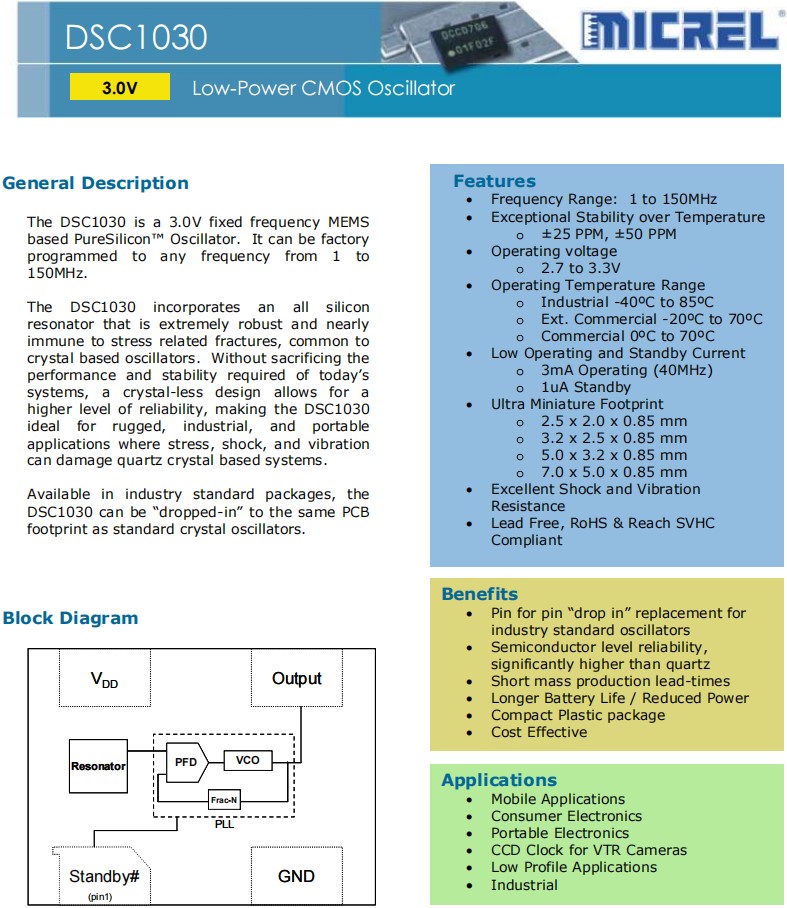 DSC1030DI1-030.0000 | Microchip晶振 | DSC1030 | 30MHz | 3V |