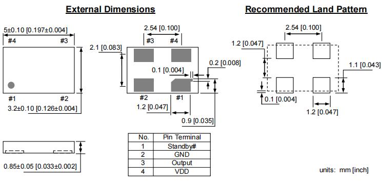 DSC1030BC1-050.0000T,5032mm,Microchip低功耗晶振,消費電子晶振,尺寸圖