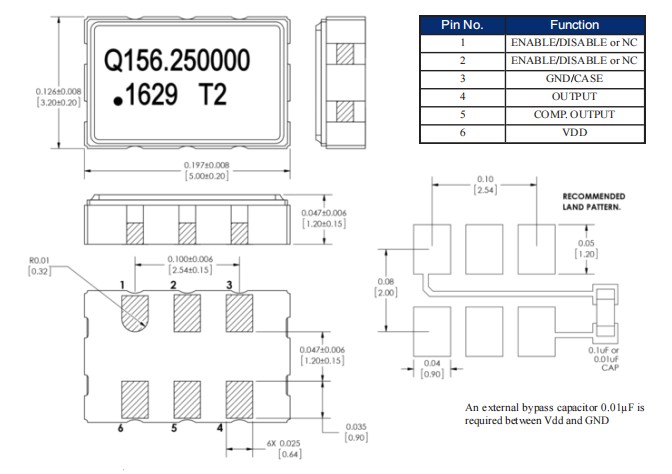 QTCC356LWD12-125.000MHz,LVDS差分晶振,6G以太網晶振參數表
