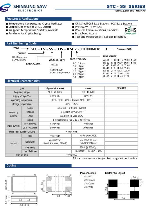 SHINSUNG晶振,STC-SS貼片晶體,STC-CS-SS-33S-0.5HZ-20.000MHz溫補(bǔ)振蕩器,5032mm體積的石英晶體振蕩器,有源晶振,該產(chǎn)品可驅(qū)動(dòng)2.5V的溫補(bǔ)晶振,壓控晶振,VC-TCXO晶體振蕩器產(chǎn)品,電源電壓的低電耗型,編帶包裝方式,可對(duì)應(yīng)自動(dòng)高速貼片機(jī)自動(dòng)焊接,及IR回流焊接(無(wú)鉛對(duì)應(yīng)),為無(wú)鉛產(chǎn)品,超小型,質(zhì)地輕.產(chǎn)品被廣泛應(yīng)用到集成電路,程控交換系統(tǒng),無(wú)線發(fā)射基站.