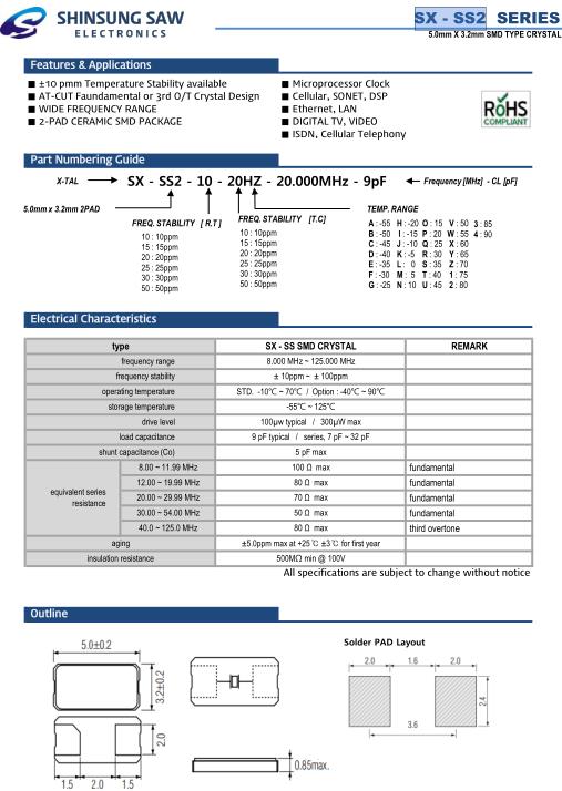 type | SX - SS2 SMD CRYSTAL | REMARK | |