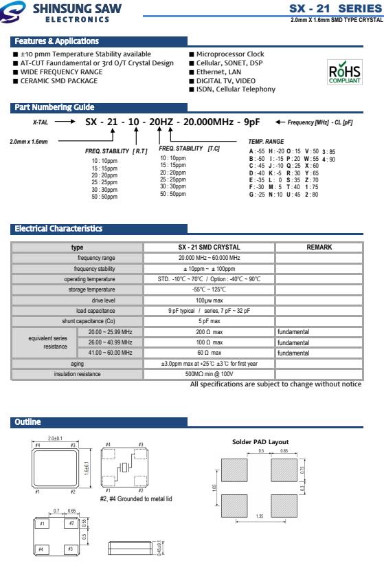 type | SX - 21 SMD CRYSTAL | REMARK | |