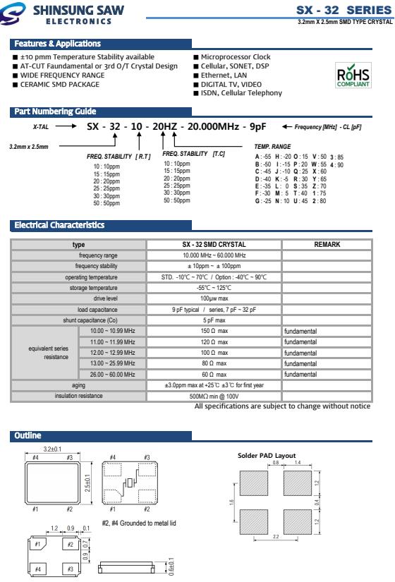 type | SX - 32 SMD CRYSTAL | REMARK | |