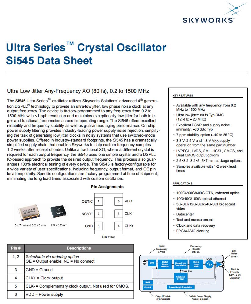 Skyworks有源晶振,545BAA78M1250BBGR晶振,6G以太網(wǎng)晶振
