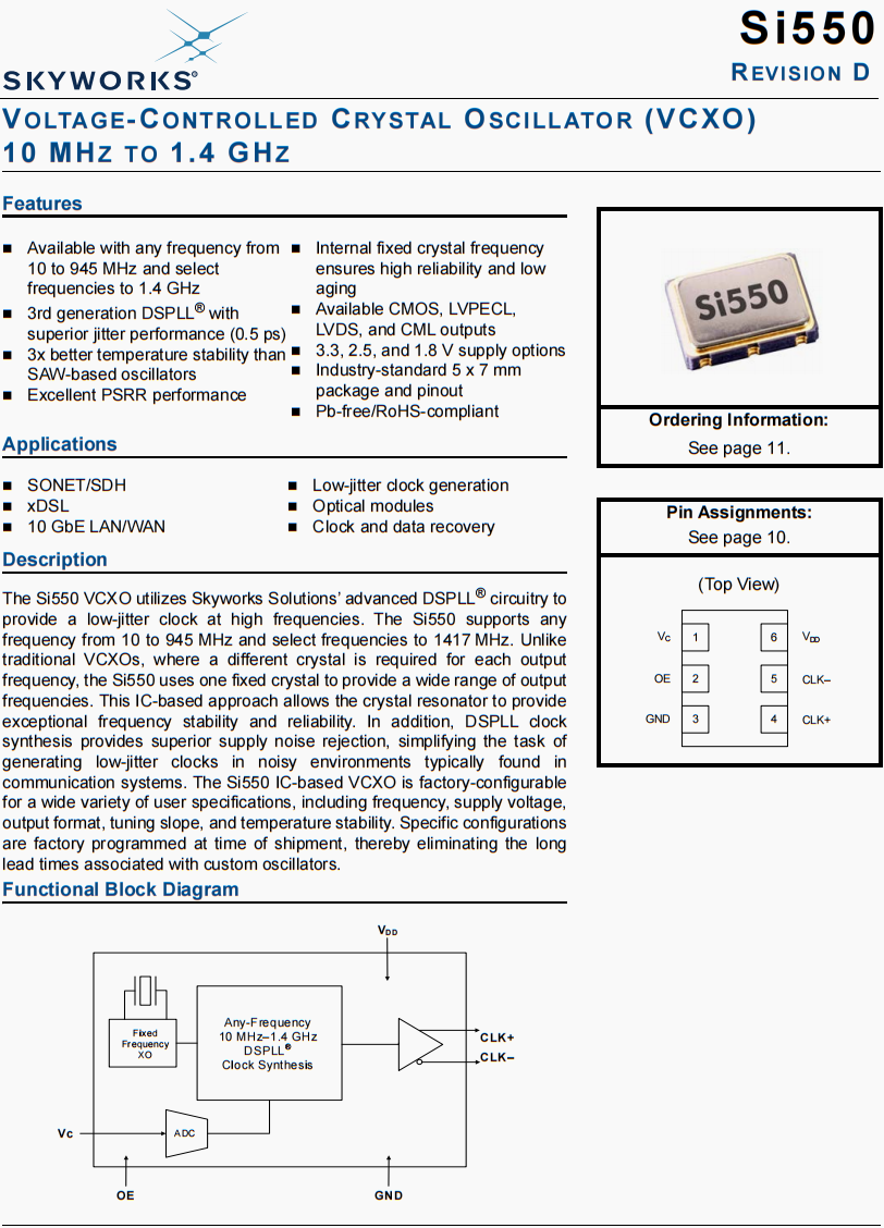 536BC159M375DG | Skyworks晶振 | Si536 | XO | 159.375 MHz | LVDS | 3.3V | ±7ppm |