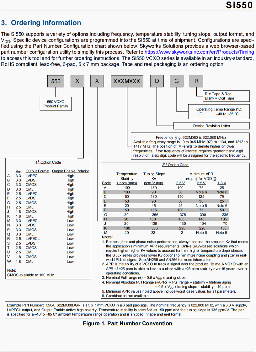 536AC156M250DG | Skyworks晶振 | Si536 | XO | 156.25 MHz | LVPECL | 3.3V | ±7ppm |
