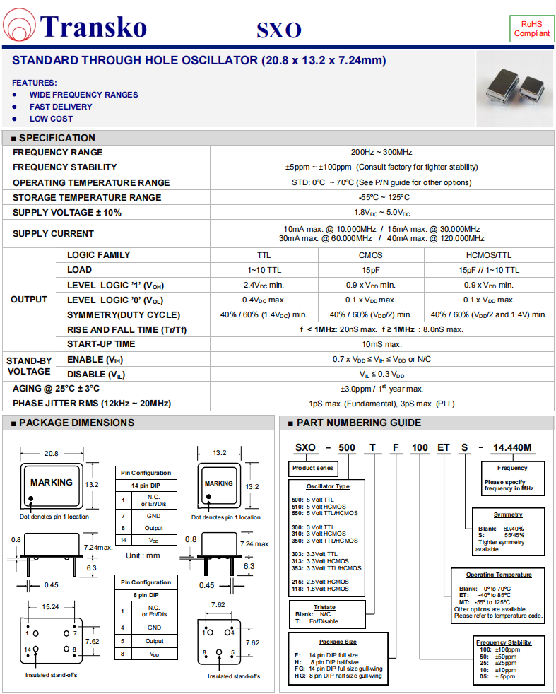 SXO-510TF50ET-16.000M,歐美Transko鐘振,6GWIFI應用晶振,歐美Transko鐘振,SXO有源晶振,SXO-510TF50ET-16.000M晶振,石英晶體振蕩器,進口長方形晶振,頻率16MHz,電壓5V,頻率穩定性50ppm,工作溫度-40~85°C,尺寸大小為20.8 x 13.2 x 7.24mm,耐高溫晶振,無鉛環保晶振,6GWIFI應用晶振,機載通信晶振,無線通信晶振,微波接收器晶振,網絡設備晶振.