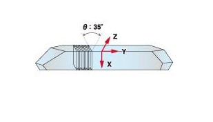 于一元三次方程式的曲線 , 顯示在特定的溫度范圍內 , 有很好的頻率穩定特性 . 是目前水晶振蕩器最常使用的切割型式