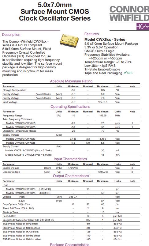 CWX823-080.0M | Connor-Winfield振蕩器 | CWX823 | 80MHz | -20°C ~ 70°C |