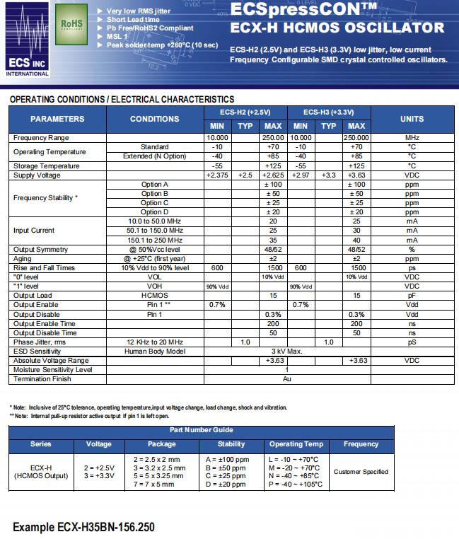 ECX-H27BN-62.500 | ECS SPXO振蕩器 | ECSpressCON™ ECX-H | 62.5MHz | -40°C ~ 85°C |