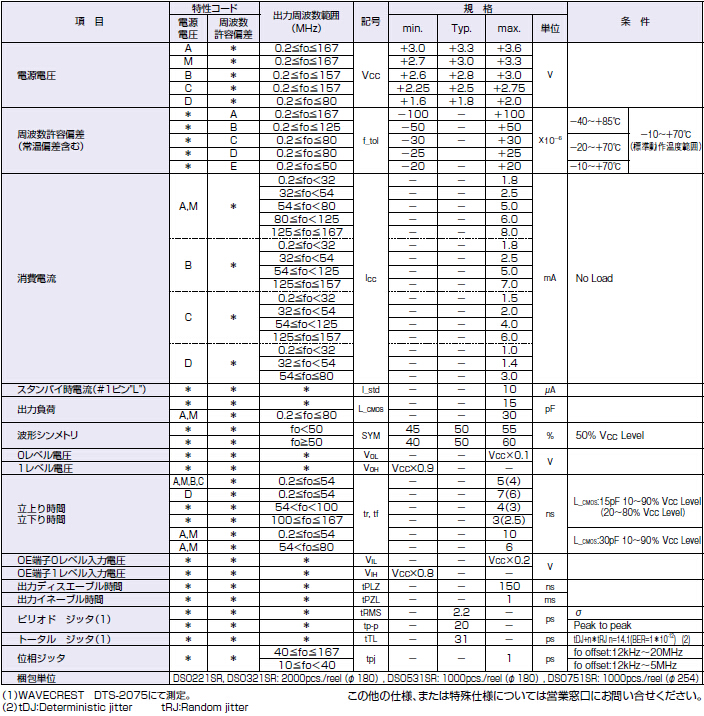 KDS有源晶振規格 | 符號 | KDS石英晶體振蕩器參數 | 條件 | |