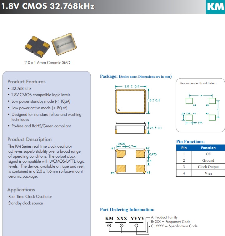 KM3270002 | Diodes Crystal | SaRonix-eCera™ KM | 32.768kHz | ±25ppm | -40°C ~ 85°C |