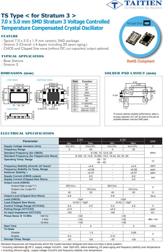 TSEATCSANF-20.000000 | Taitien | TS | VCTCXO | 20MHz | 2.8 V ~ 3.3 V |