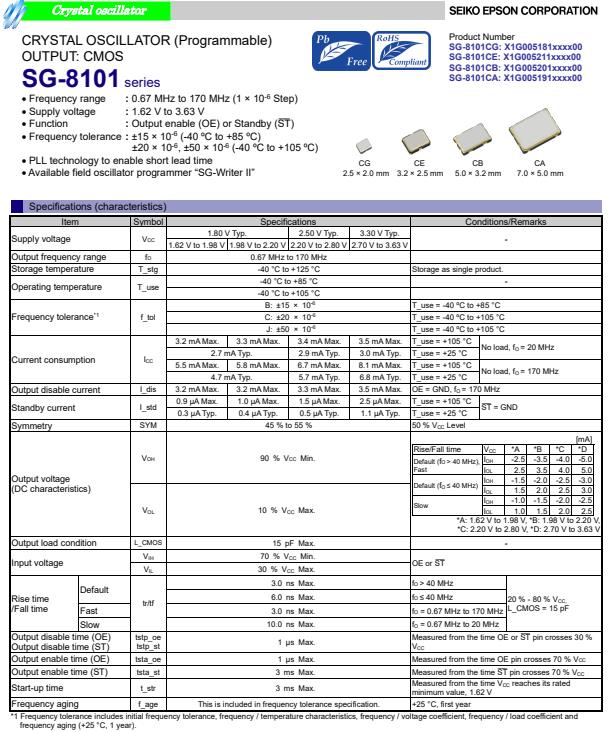 X1G005191001300 | SG-8101CA | 100.000000 MHz | 7.00 x 5.00 x 1.40 mm | CMOS | 1.620 to 3.630 V | -40 to 85 °C |
