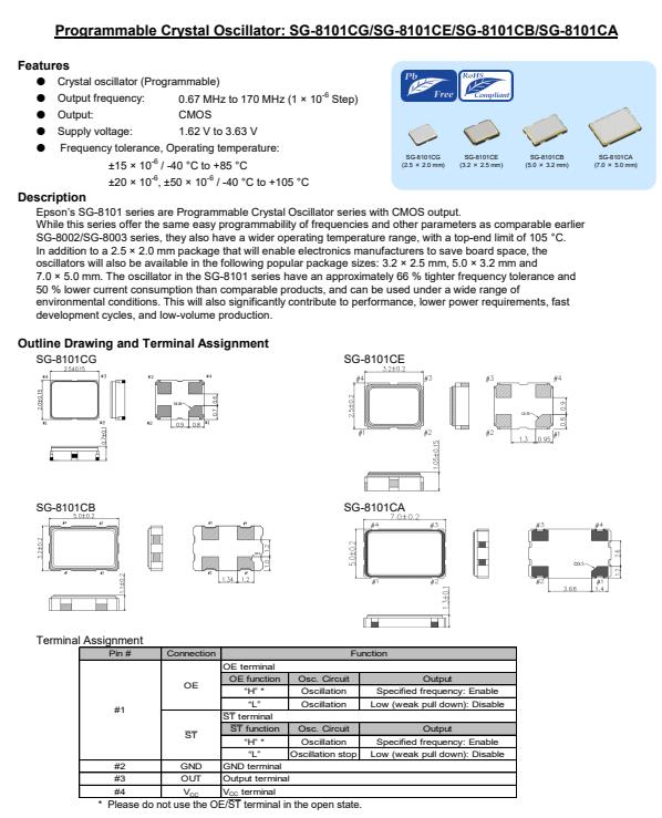 X1G005191005900 | SG-8101CA | 4.096000 MHz | 7.00 x 5.00 x 1.40 mm | CMOS | 1.620 to 3.630 V | -40 to 85 °C |
