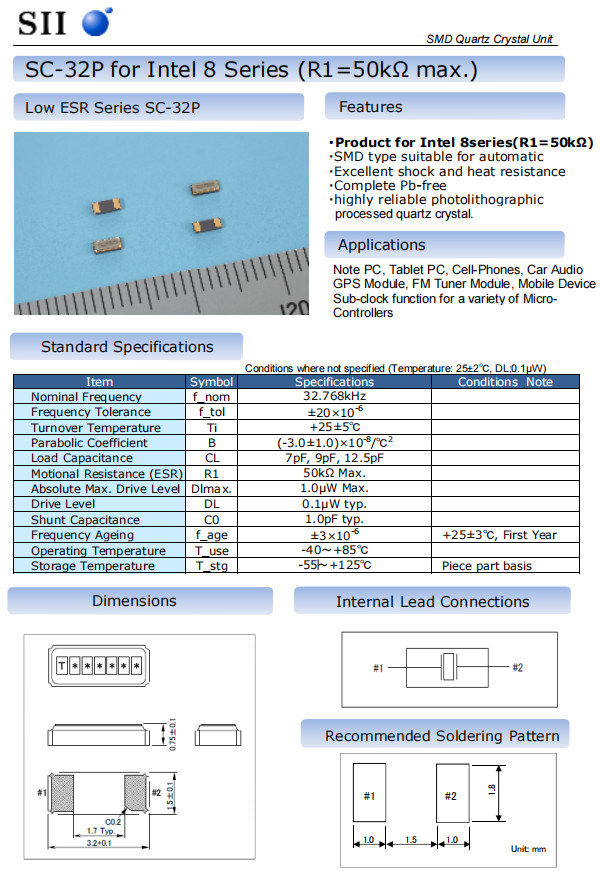隨著SC-32P系列的出現(xiàn),日本SEIKO晶振提供的32.768KHz石英晶體的最大電阻降低,3.2×1.5mm外殼的電阻為50k?,標(biāo)準(zhǔn)情況下,常用的3.2×1.5毫米32.768KHz石英晶體的最大電阻為70k?,SC-32P系列可以提供7pf,9pf,12.5pf的負(fù)載電容。開(kāi)發(fā)者可以在25°C時(shí)在10ppm(可選)和20ppm(標(biāo)準(zhǔn))的頻率容差之間進(jìn)行選擇。通常,石英晶體可以在所有版本的現(xiàn)貨中獲得(以先前銷售為準(zhǔn))。4到6周的更換時(shí)間非常短。