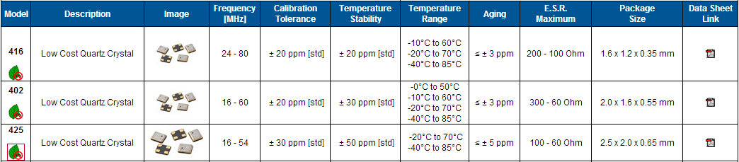 頻率公差25℃ | ±20 ppm, ±30 ppm, ±50 ppm | |