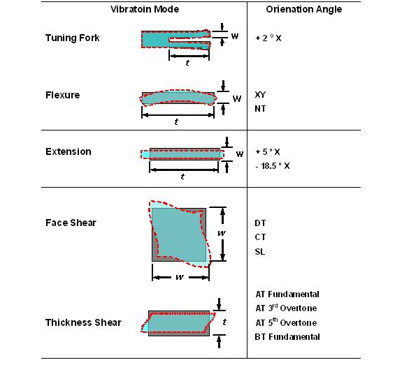 大部份的石英晶體產品是用于電子線路上的參考頻率基準或頻率控制組件, 所以, 頻率與工作環境溫度的特性是一個很重要的參數. 事實上, 良好的頻率與溫度(frequeny versus temperature)特性也是選用石英做為頻率組件的主要因素之一. 經由適當的定義及設計, 石英晶體組件可以很容易的就滿足到以百萬分之一 (parts per million, ppm) 單位等級的頻率誤差范圍. 若以離散電路方式將LCR零件組成高頻振蕩線路, 雖然也可以在小量生產規模達到所需要的參考頻率信號誤差在ppm或sub-ppm等級要求, 可是這種方式無法滿足產業要達到的量產規模. 石英組件的頻率對溫度特性更是離散振蕩線路無法簡易達成的. 在(圖四) 中提供了數種不同的石英晶體切割角度的頻率對溫度特性曲線.